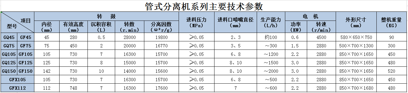 管式分離機(jī)用與分離各種乳濁液、懸浮液。特別用于二相比重甚微的及含有少量雜質(zhì)的液體及濃度小粘度大固相顆粒細(xì),固液比重差小的固體和液體分離。廣泛應(yīng)用于變壓器油,透平油。潤(rùn)滑油、燃料油、油脂、生物醫(yī)藥、化工、口服液、血液中血漿血球、食用油、胎盤浸泡。茶多酚。磷脂的精制、油水分離等行業(yè)。